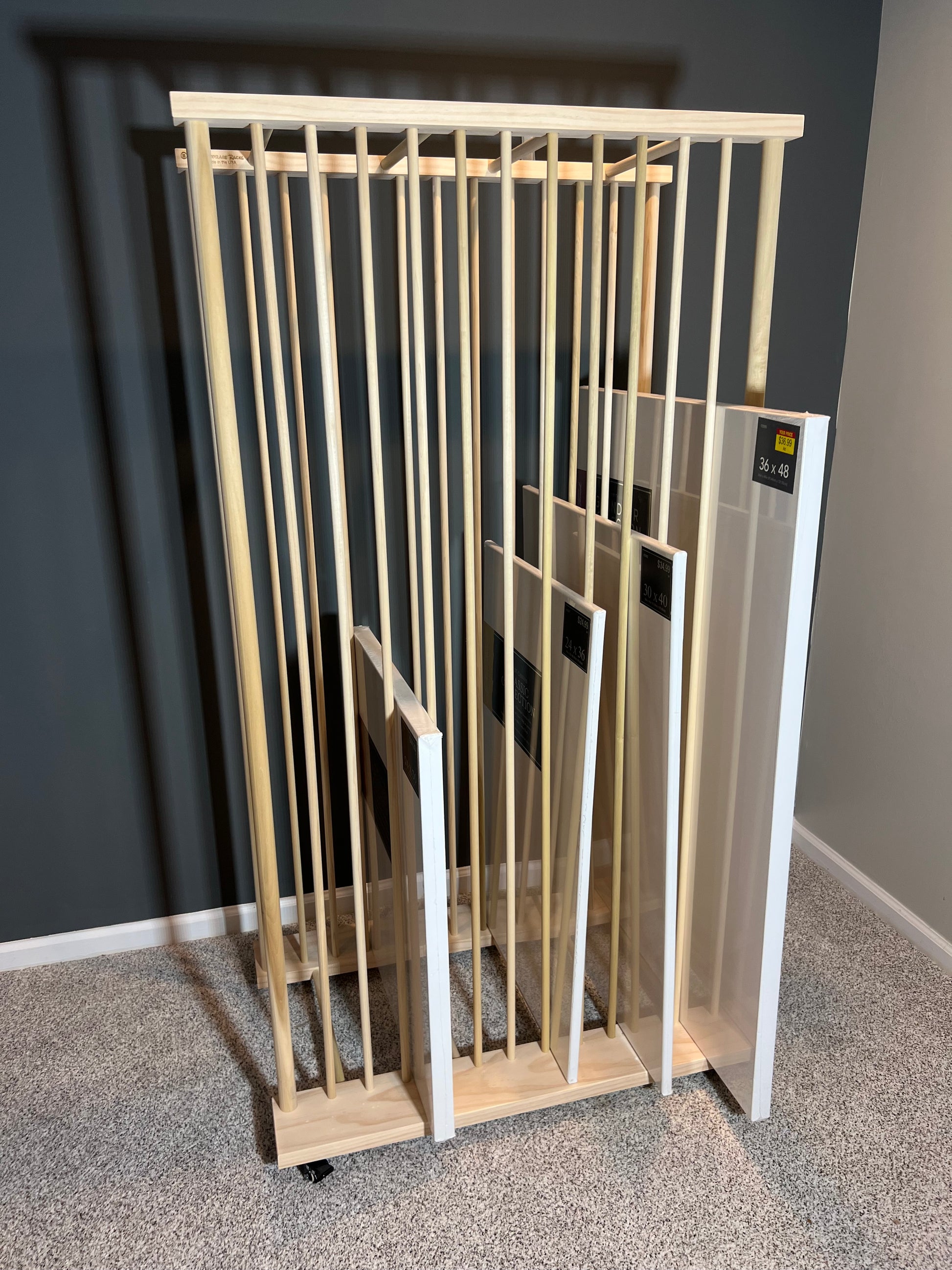 Large Art Canvas Storage - 36” Long Enclosed Art Storage Rack / Art Storage Cart - Options to hold Large Canvas up to 60” or 72”