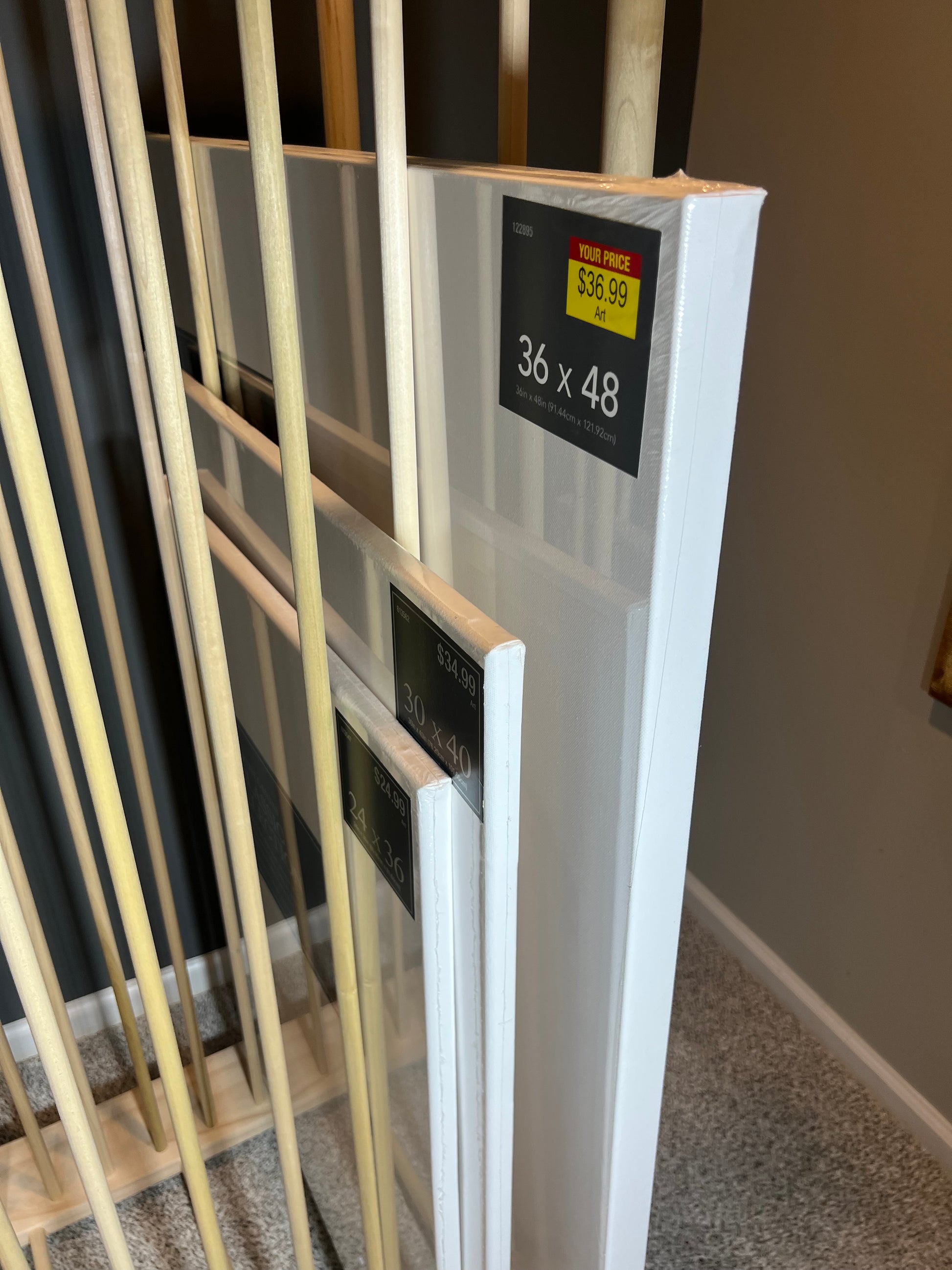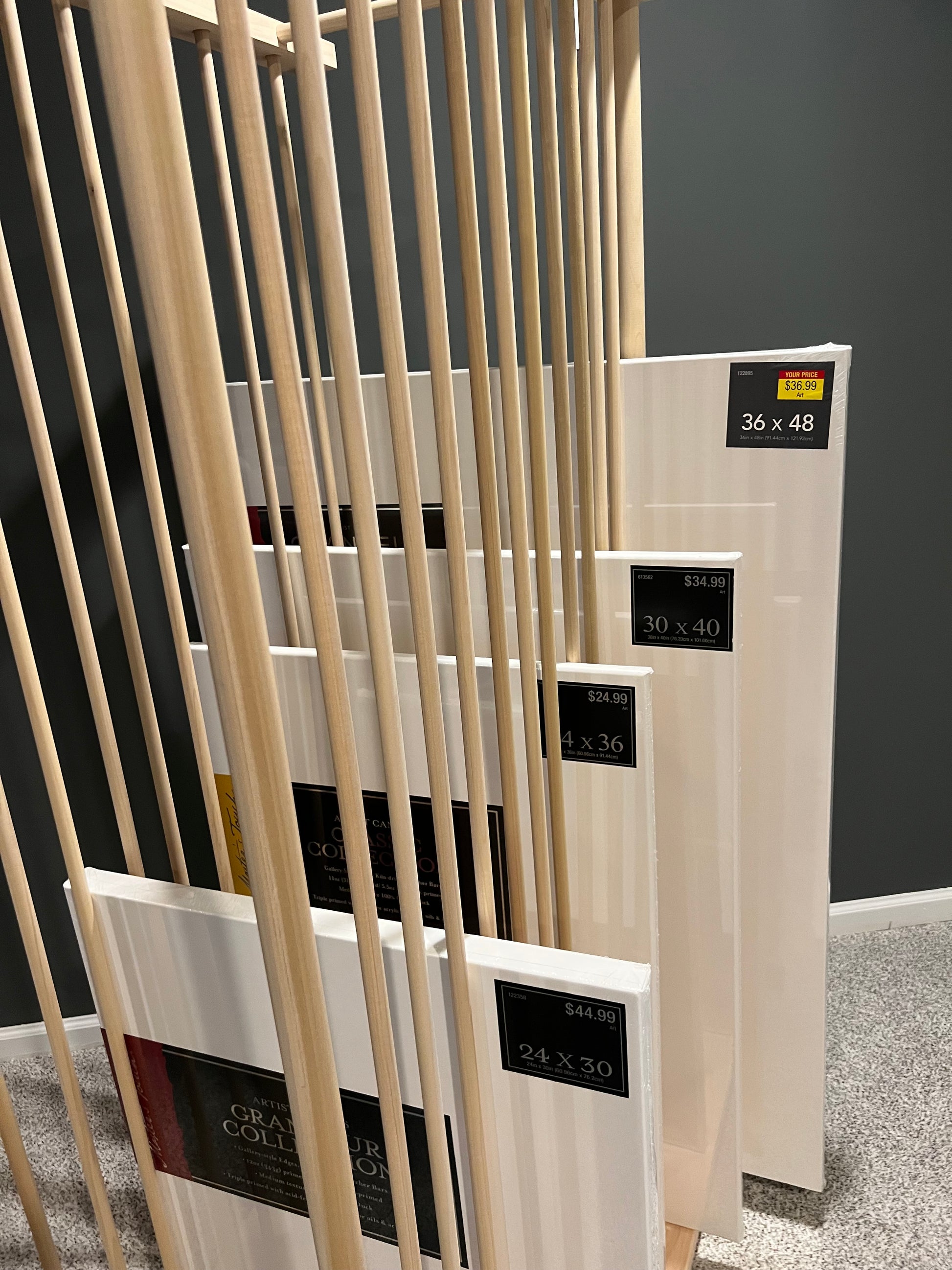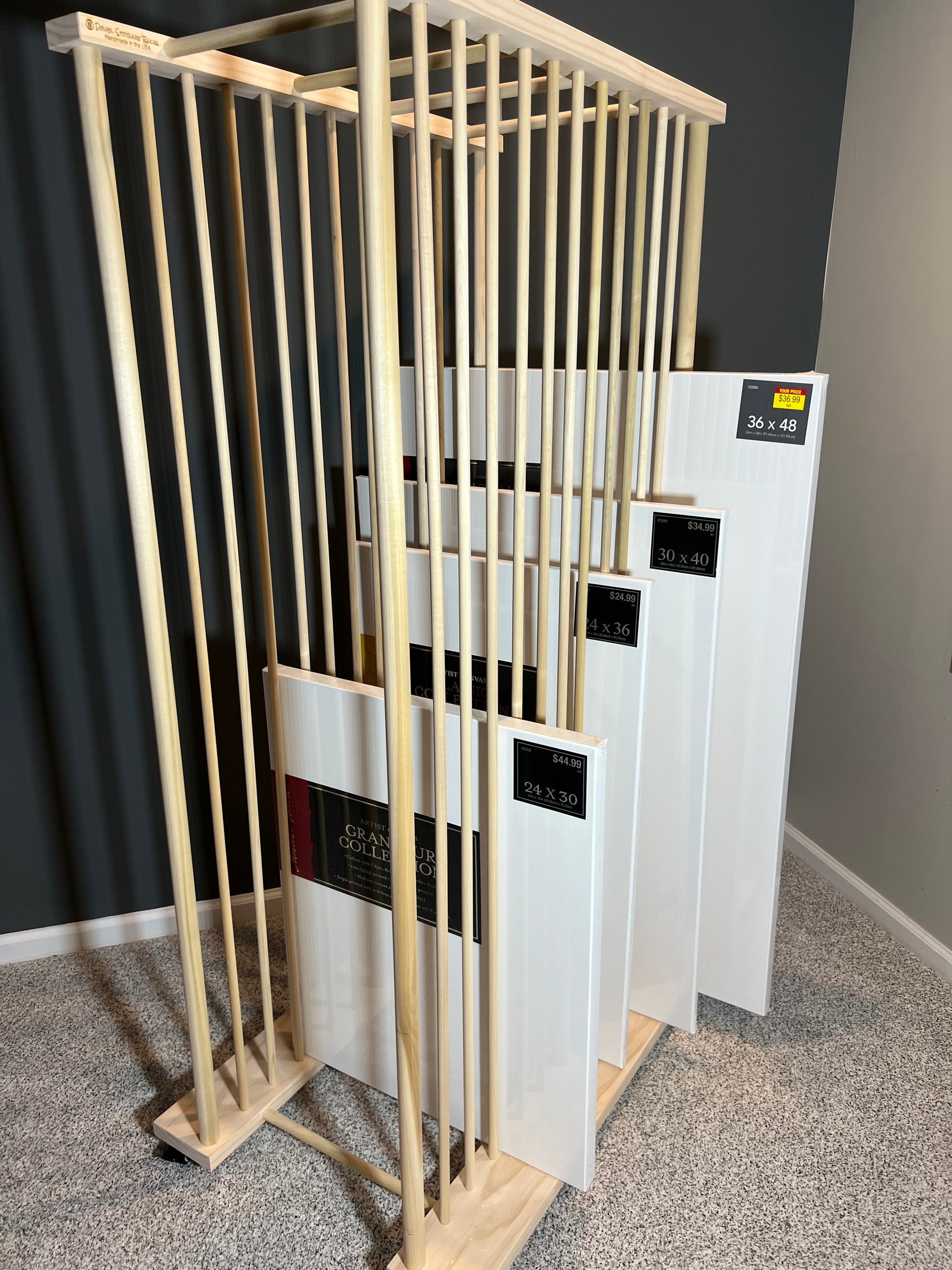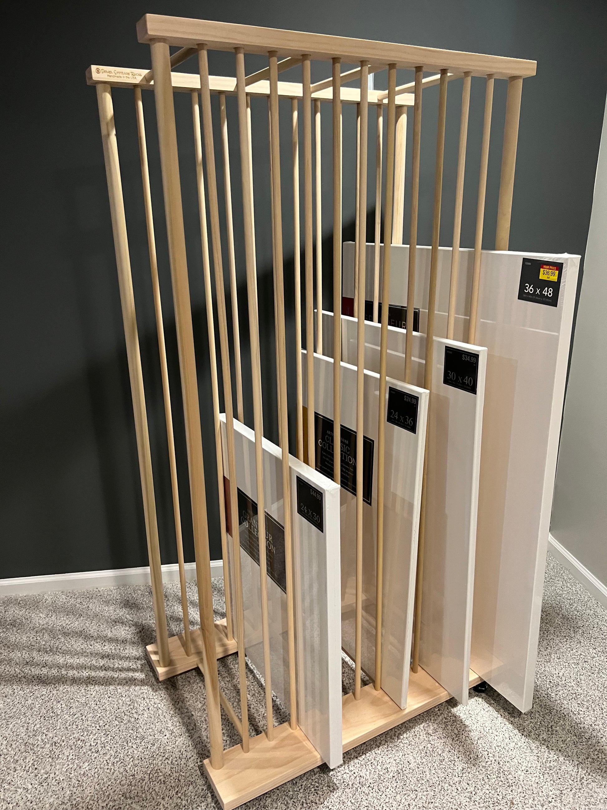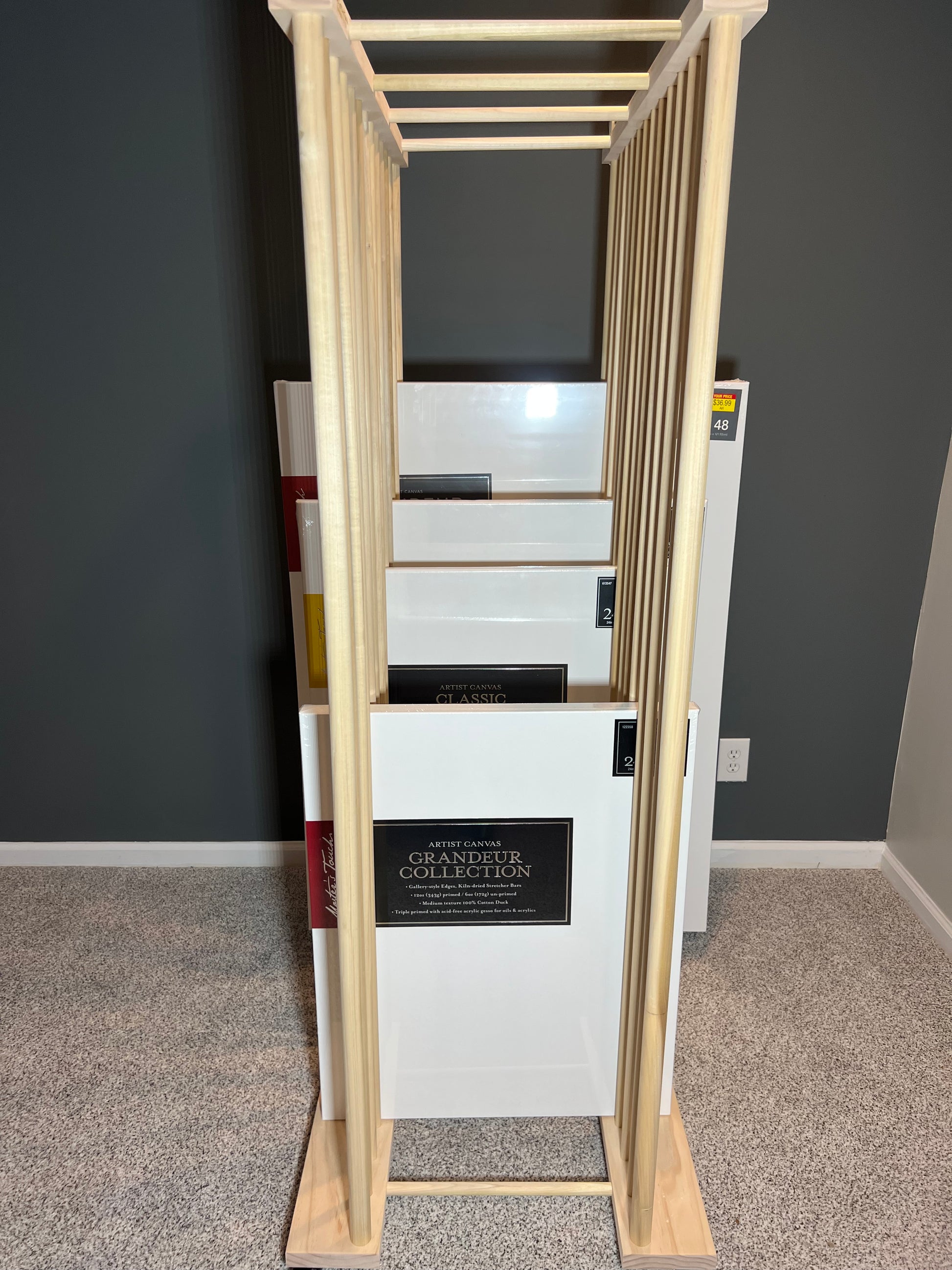 wide to fit. Canvas under 20” wide will not fit but no worries, the rack can be built to a custom width to accommodate thinner (or wider) canvas if needed. Just send me a message.