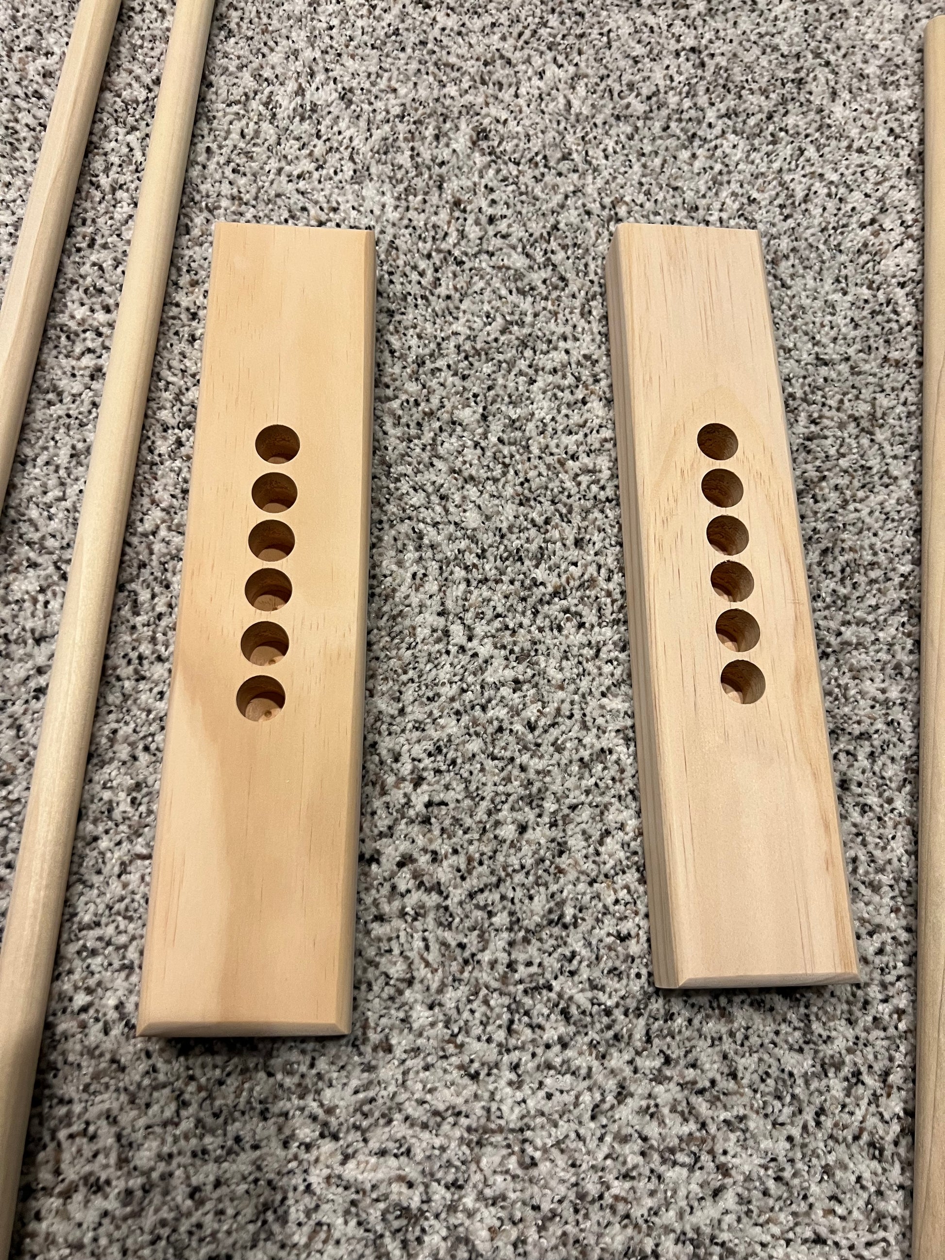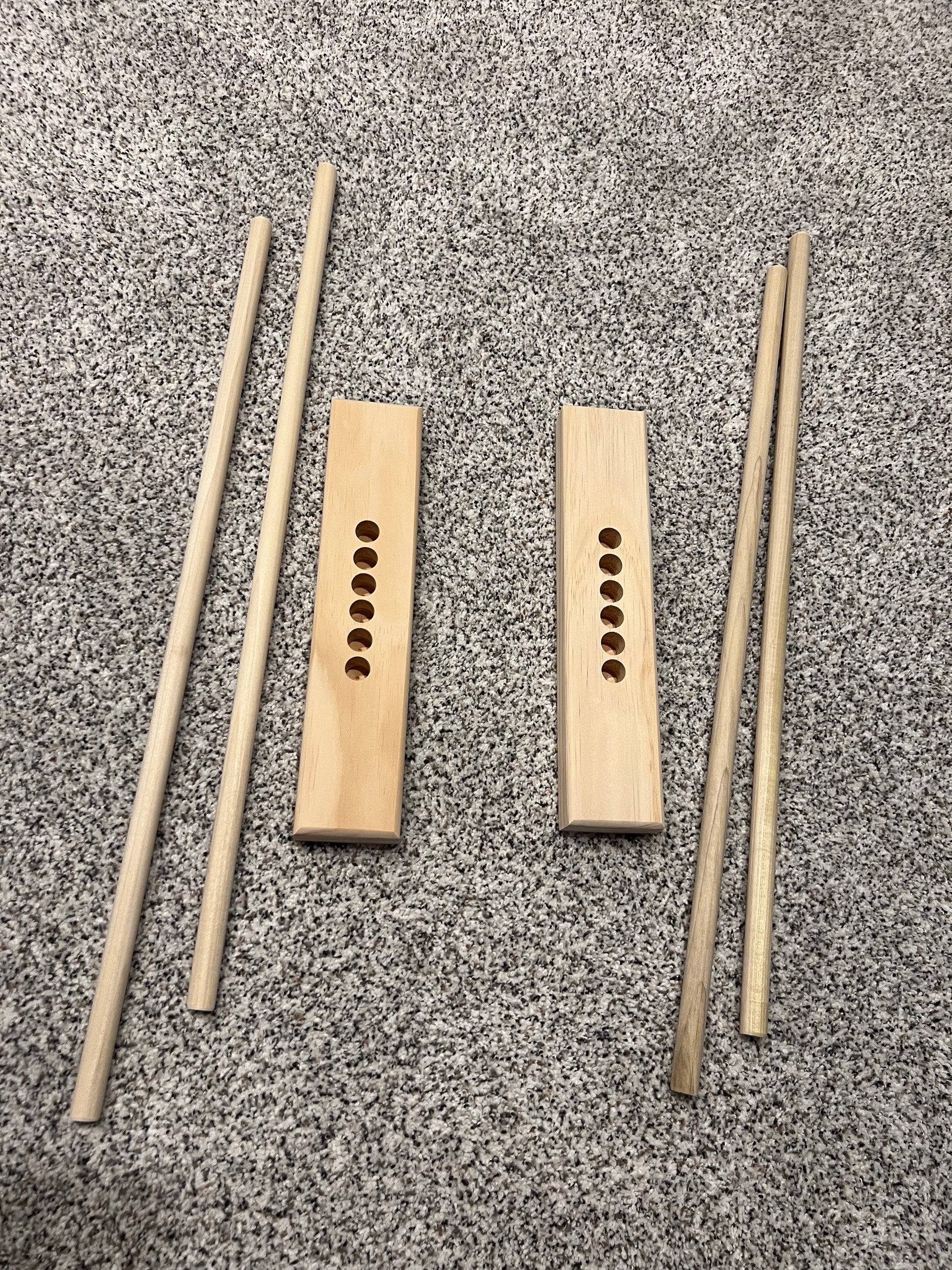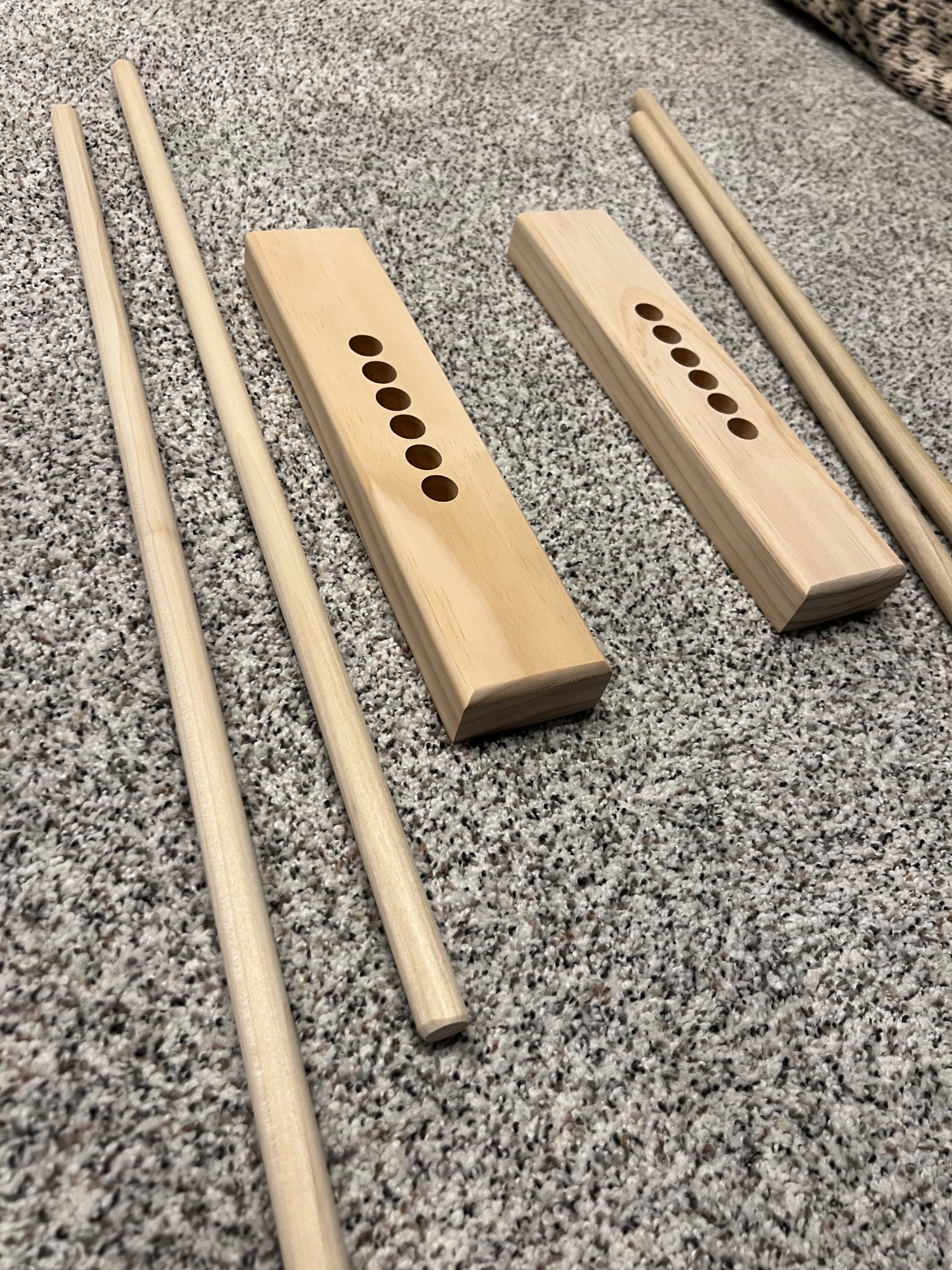 Base has adjustable holes and dowels can be spaced to hold 3/4” thick, 1.5” thick Canvas as well as other thicknesses.