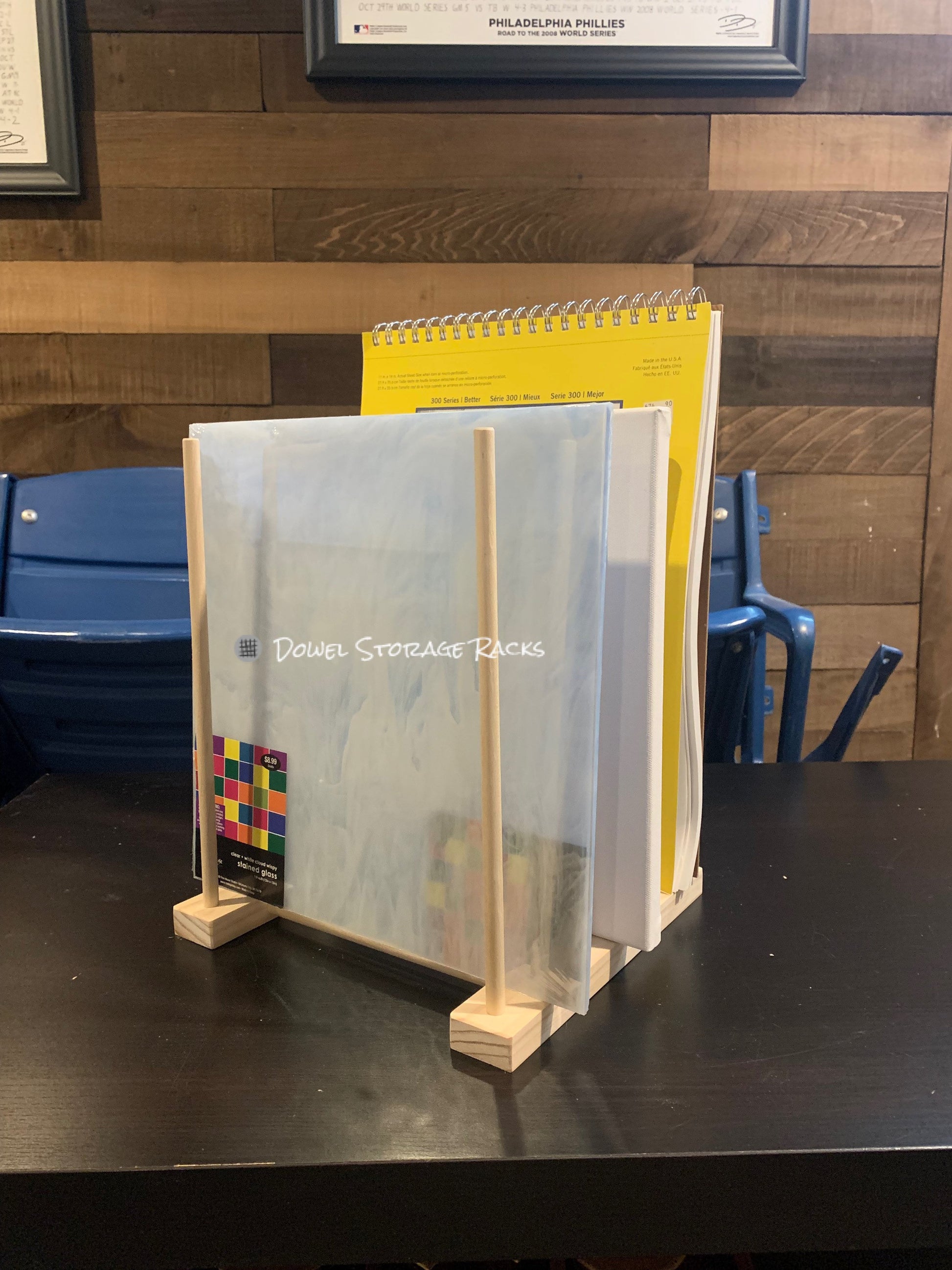 Small Wooden Dowel Storage Rack - 9.75” long by 10” wide with 12” dowels