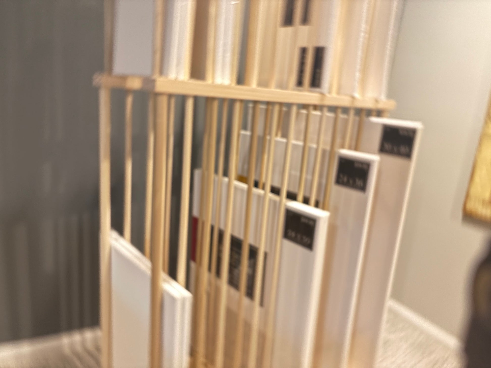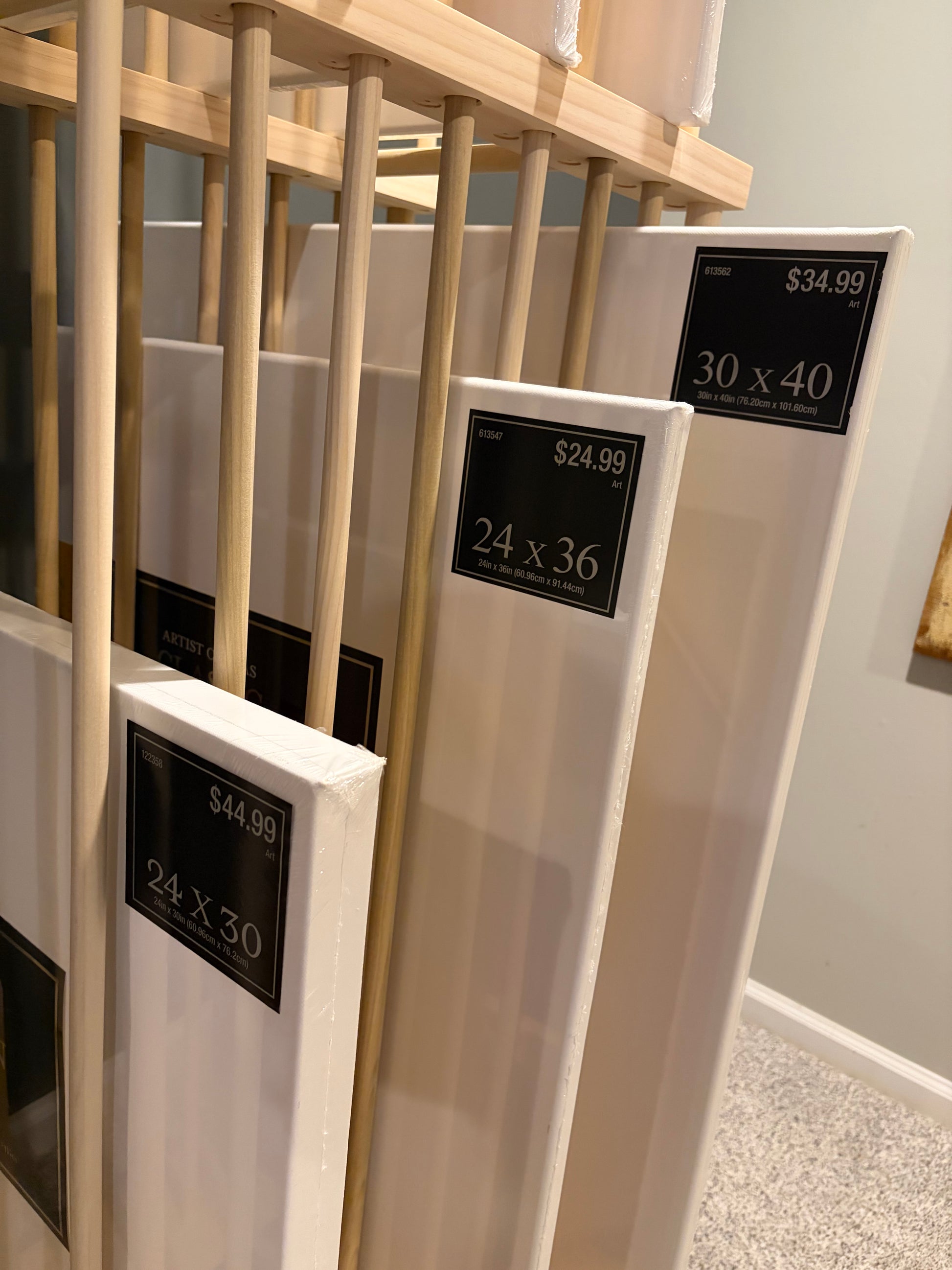 For Canvas paintings/prints that have no backing it is important that the dowel upright rests on the wooden stretcher frame and not directly on the canvas. Generally speaking the dowel must be the same height or taller than the height (or width) of the canvas.